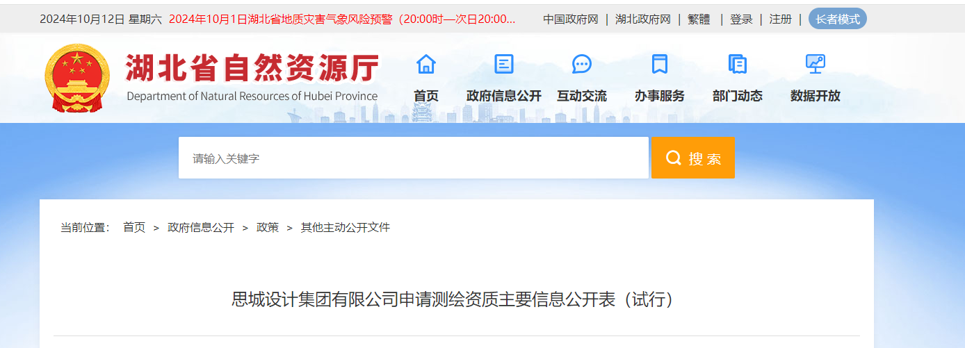 思城设计集团有限公司申请测绘资质