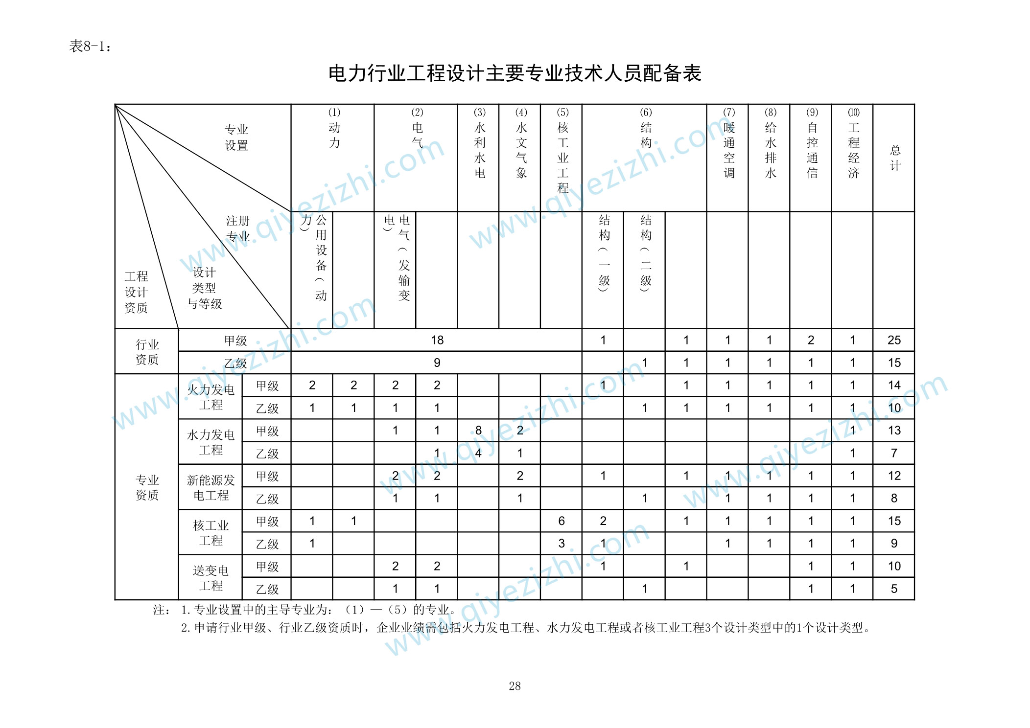 (2)主要专业技术人员数量满足所申请专业资质标准中主要专业技术人员配备表规定的要求。