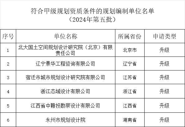 根据《中华人民共和国城乡规划法》《中华人民共和国行政许可法》以及《城乡规划编制单位资质管理办法》,现将经我部审查认定的城乡规划(国土空间规划)编制单位甲级资质认定名单予以公布。
