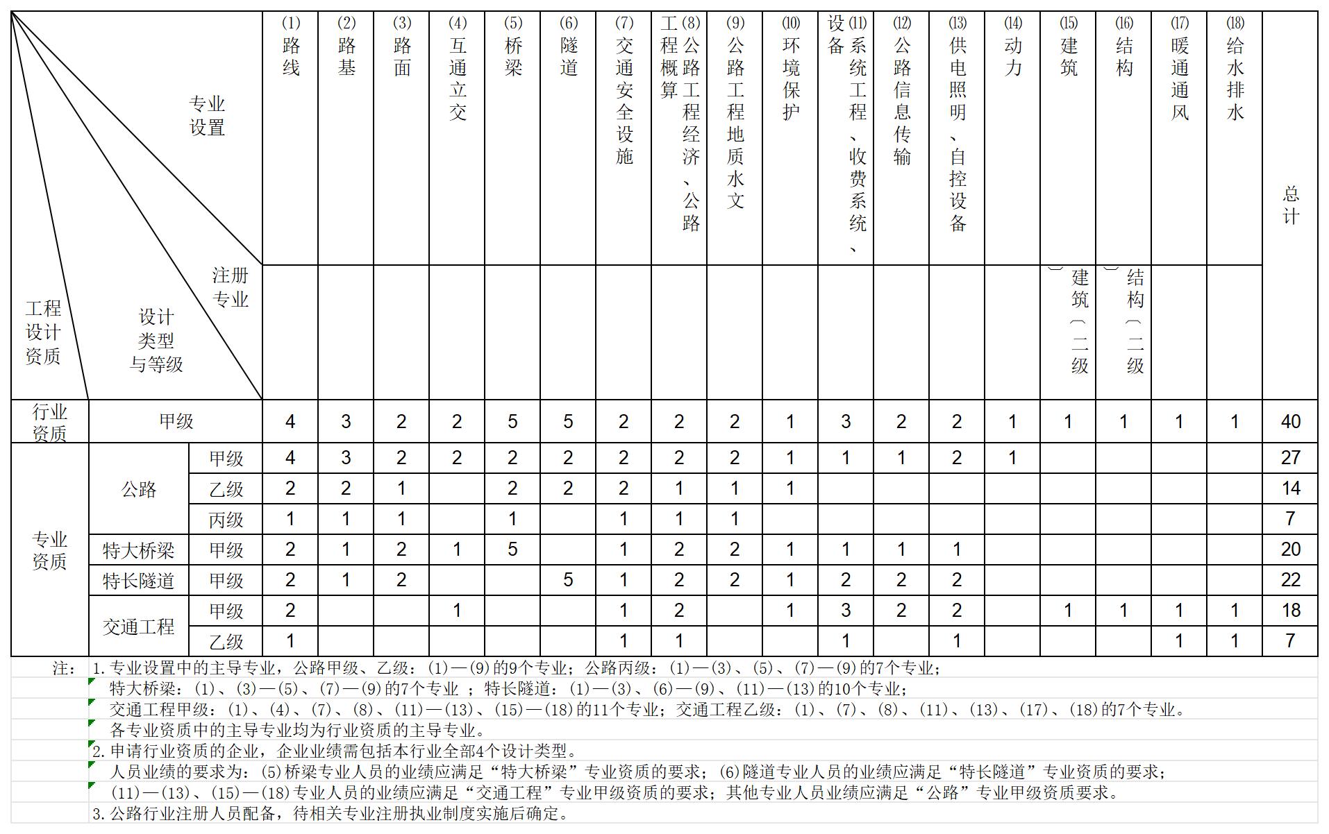 (1)专业配备齐全、合理,主要专业技术人员数量不少于所申请行业资质标准中主要专业技术人员配备表规定的人数。