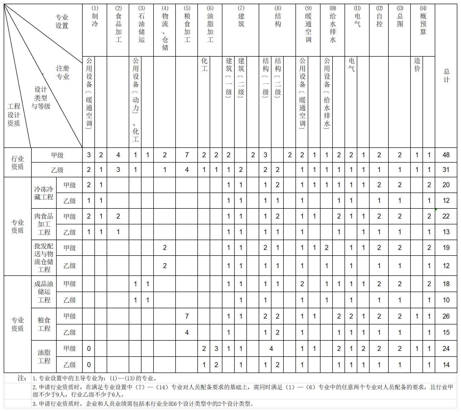 (1)专业配备齐全、合理,主要专业技术人员数量不少于所申请行业资质标准中主要专业技术人员配备表规定的人数。