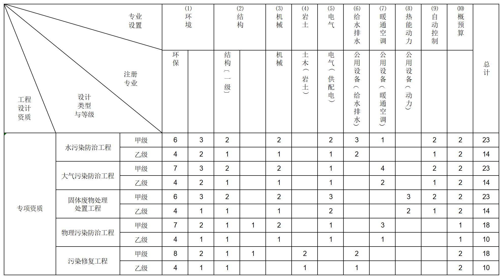 (三) 环境工程设计专项资质设甲、乙两个级别。