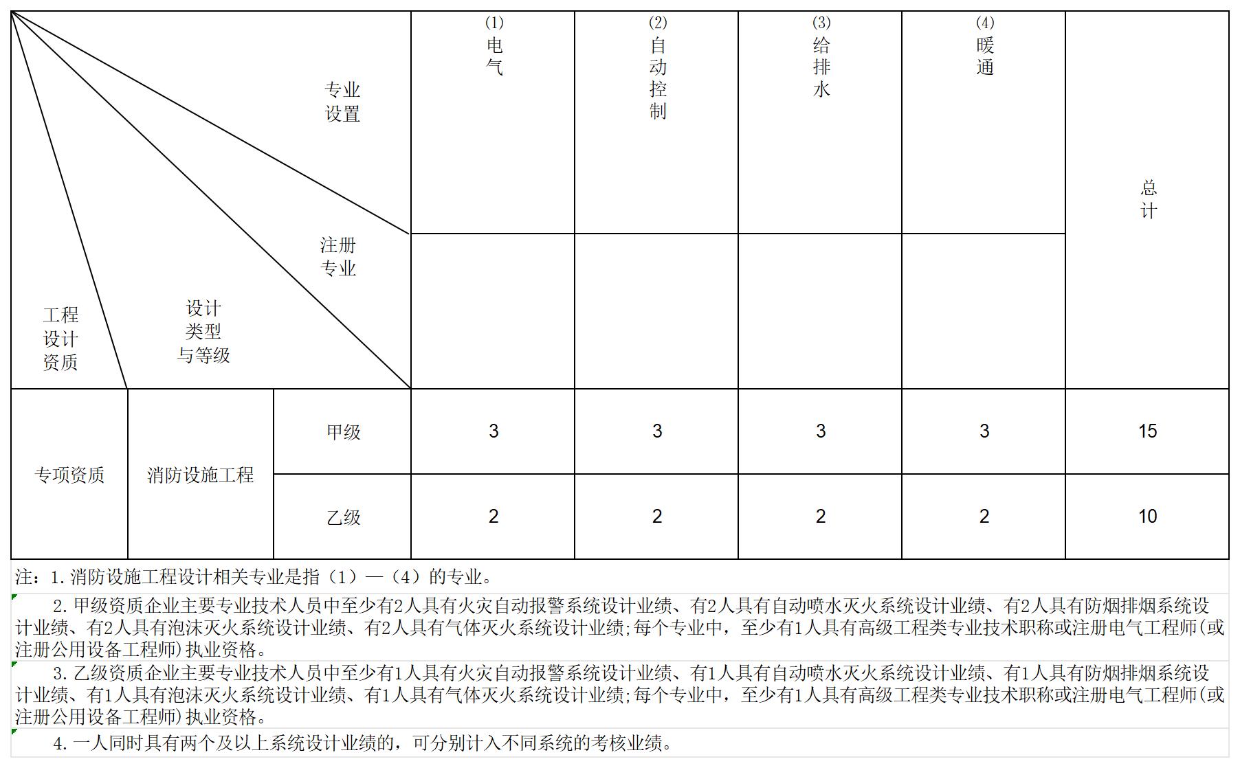 (二)消防设施工程设计专项资质设甲、乙两个级别。