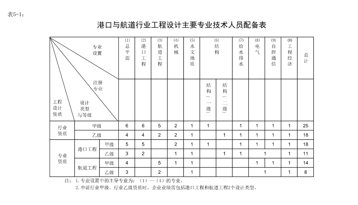 表 5-1 港口与航道行业工程设计主要专业技术人员配备表