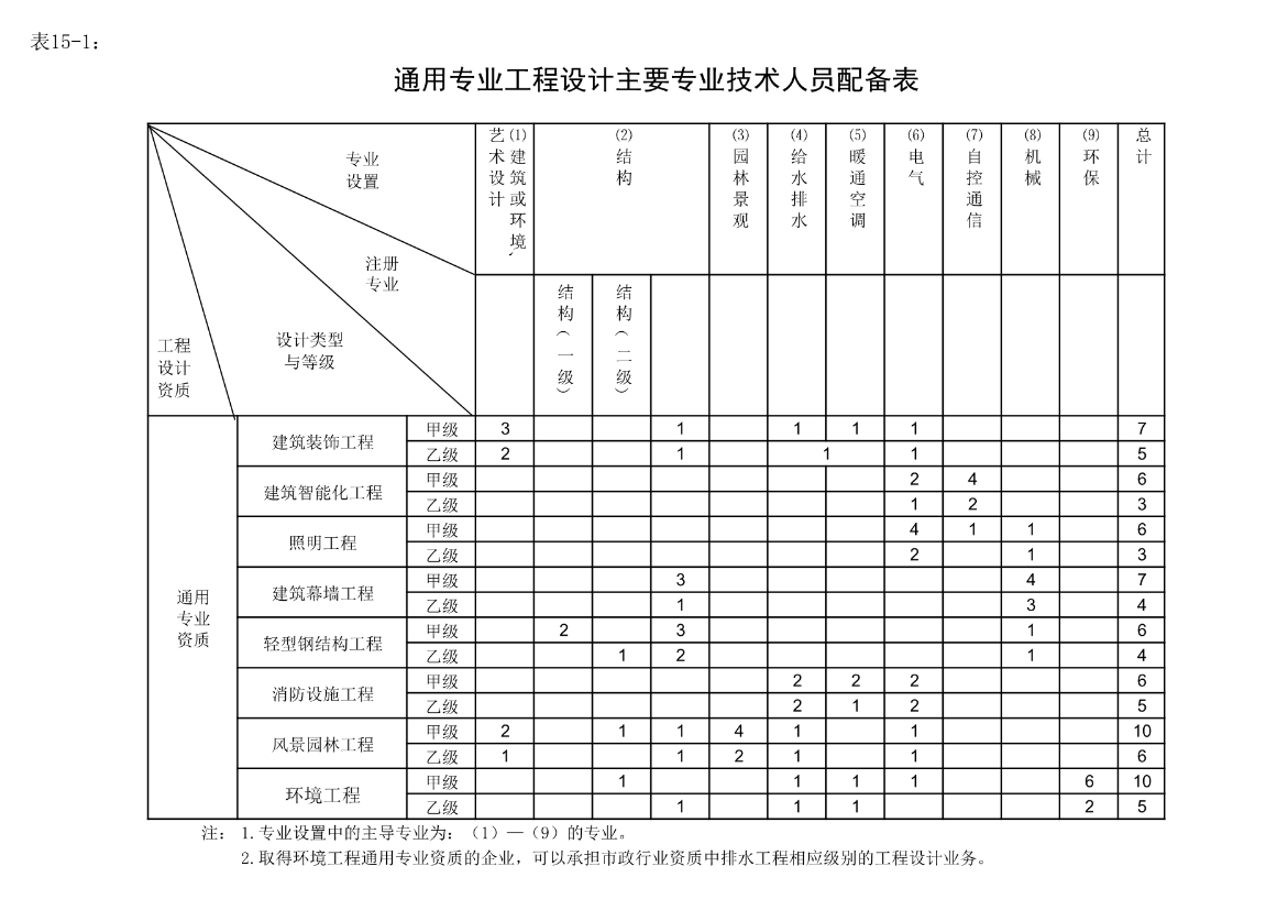 (2)主要专业技术人员数量满足所申请专业资质标准中主要专业技术人员配备表规定的要求。