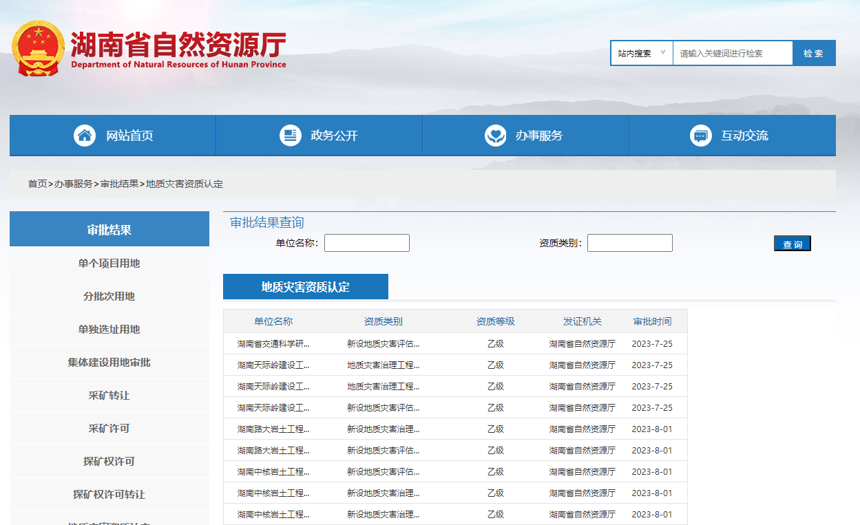 地质灾害施工资质 在哪里可以查询