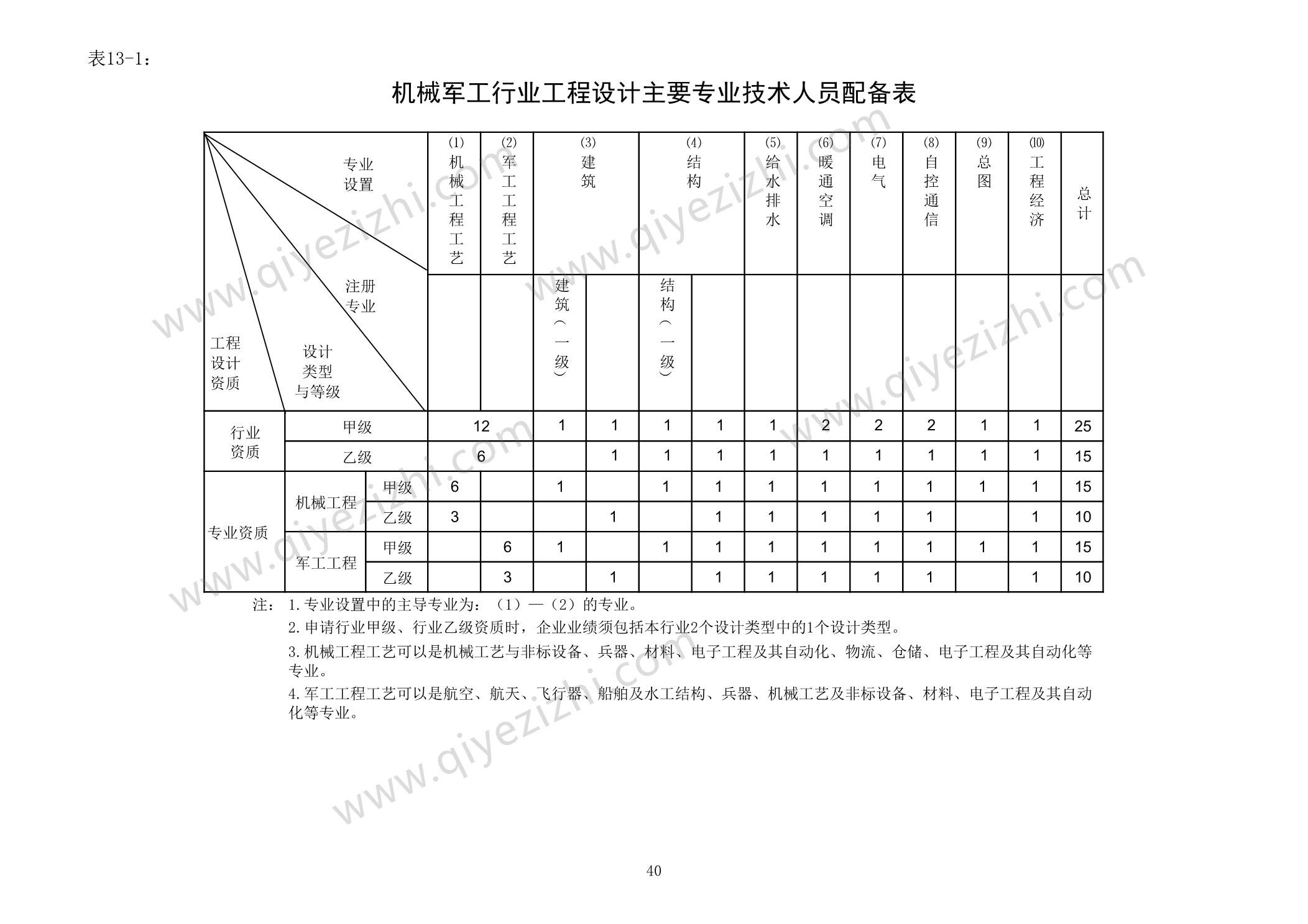 (2)主要专业技术人员数量满足所申请行业资质标准中主要专业技术人员配备表规定的要求。