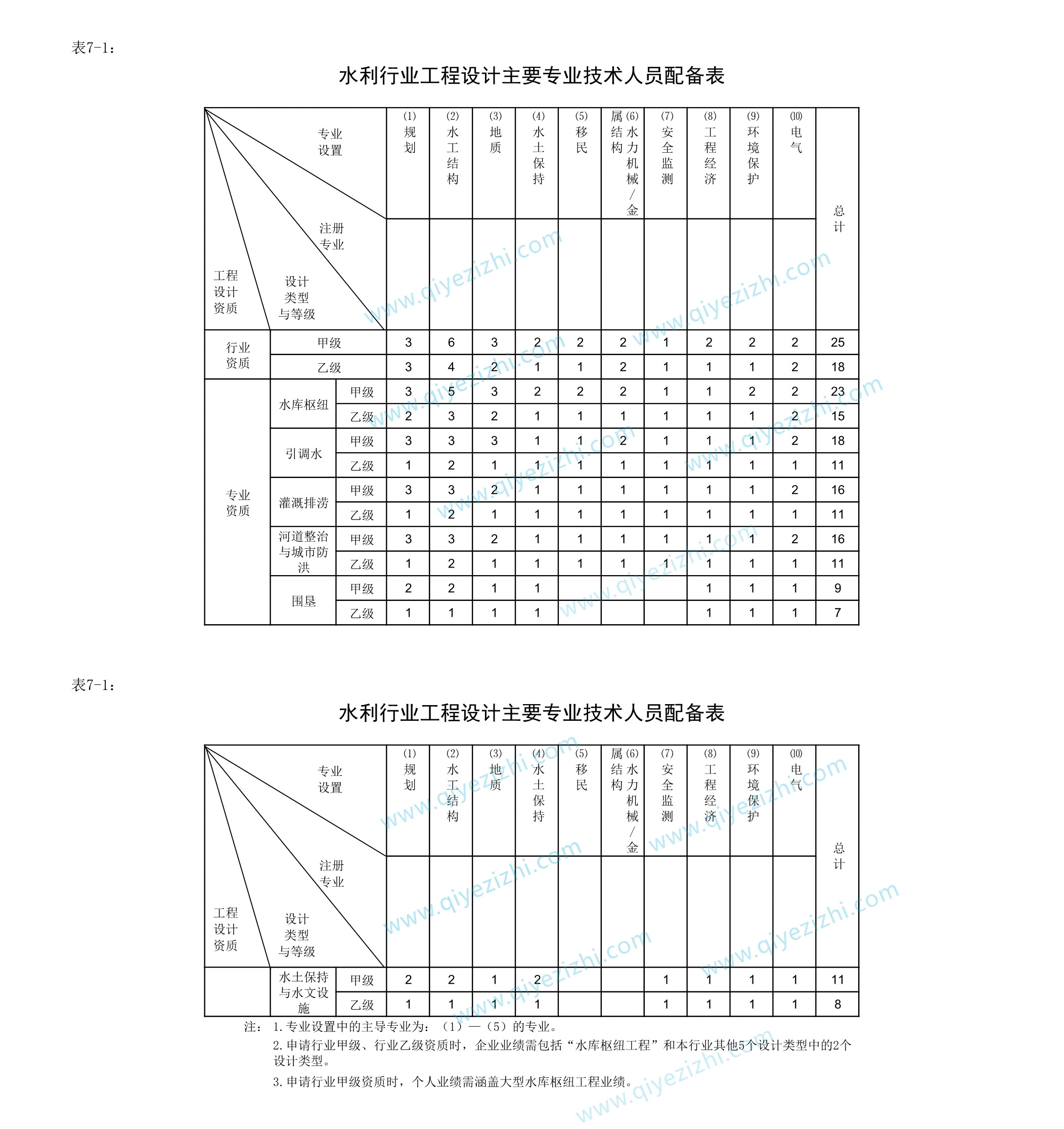 (2)主要专业技术人员数量满足所申请专业资质标准中主要专业技术人员配备表规定的要求。