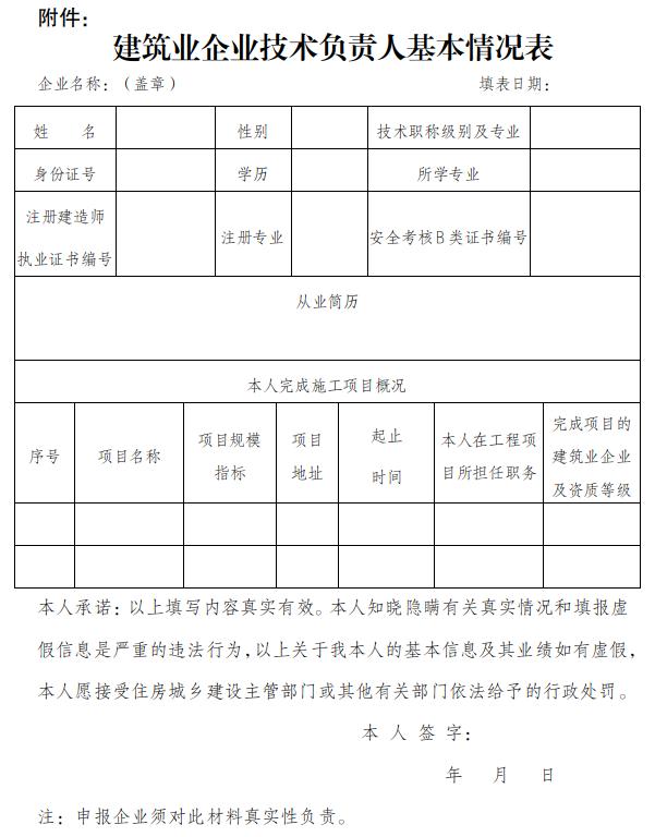 答:建筑业企业技术负责人应当按真实情况填写完整《技术负责人基本情况表》,对内容的真实性、合法性作出承诺,并对承诺内容负责,承担全部法律责任。审核时将对技术负责人的基本信息和从业简历等内容进行核查。